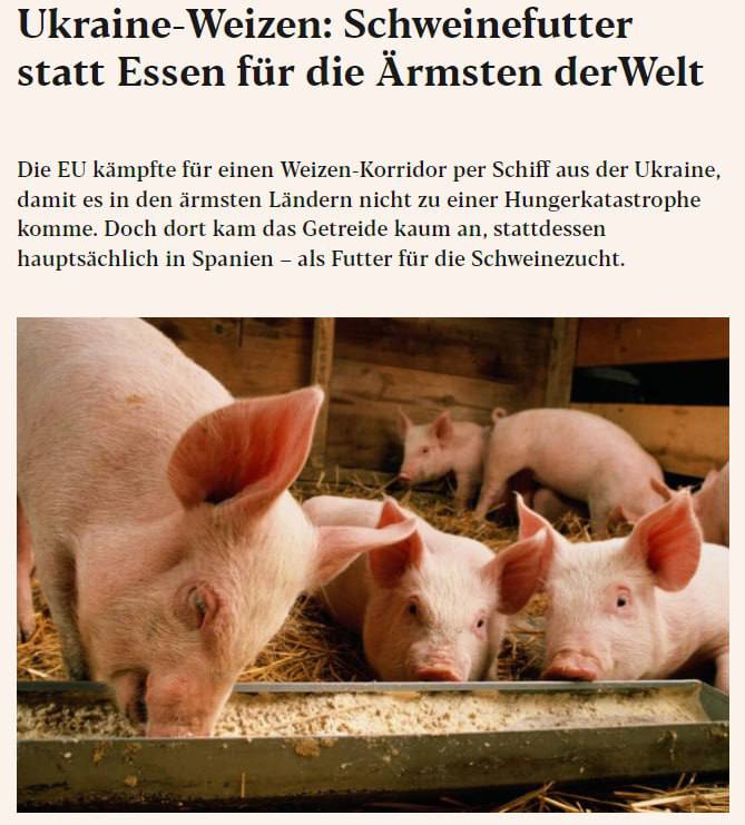 КРАСНОЯРСКИЙ КРАЙ, /НИА-КРАСНОЯРСК/. Вместо отправки украинской пшеницы бедным странам её скормили свиньям в Испании, заявил обозреватель газеты Exxpress Михаэль Кох.