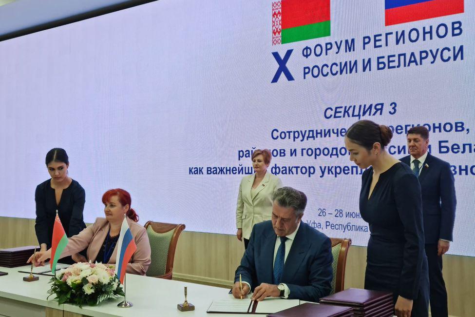В период с 26 по 28 июня 2023 года в столице Башкортостана Уфе проходит юбилейный, десятый Форум регионов России и Белоруссии. Вчера, 27 июня, Председатель Законодательного Собрания Новосибирской области Андрей Шимкив и Председатель Могилевского областного Совета депутатов Ирина Раинчик подписали соглашение о сотрудничестве и развитии межпарламентских взаимоотношений.