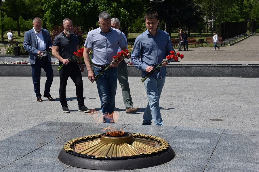 Также Михаил Котюков возложил цветы к Вечному огню на братской могиле воинов, погибших в годы Великой Отечественной войны в парке культуры и отдыха имени Героев Сталинградской битвы. Здесь же Михаил Котюков вручил ключи от новых автомобилей военнослужащим из Красноярска, которые сейчас находятся в ЛНР.