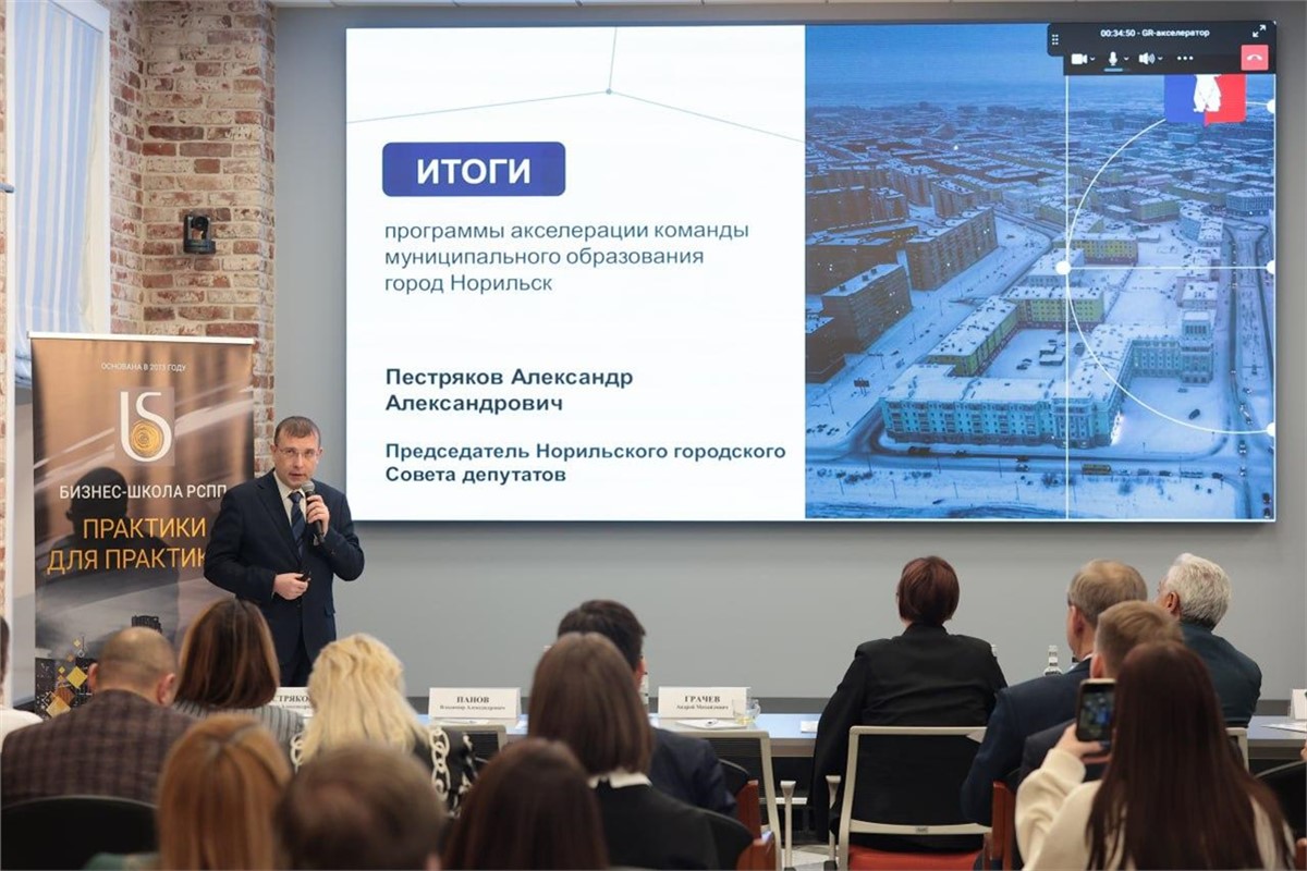 Делегацию Норильска возглавил председатель городского Совета Александр Пестряков, представивший итоговую презентацию инвестиционного потенциала города и работу команды GR-акселератора в муниципалитете, а также кратко рассказавший о бизнес-проектах, вышедших в финал. Трое из четырех финалистов от Норильска презентовали свои проекты экспертам очно.