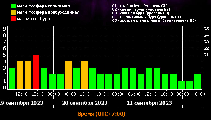 Прогноз с 20 сентября по 16 октября 2023 года составлен лабораторией солнечной астрономии Института космических исследований РАН и Института солнечно-земной физики Сибирского отделения РАН.