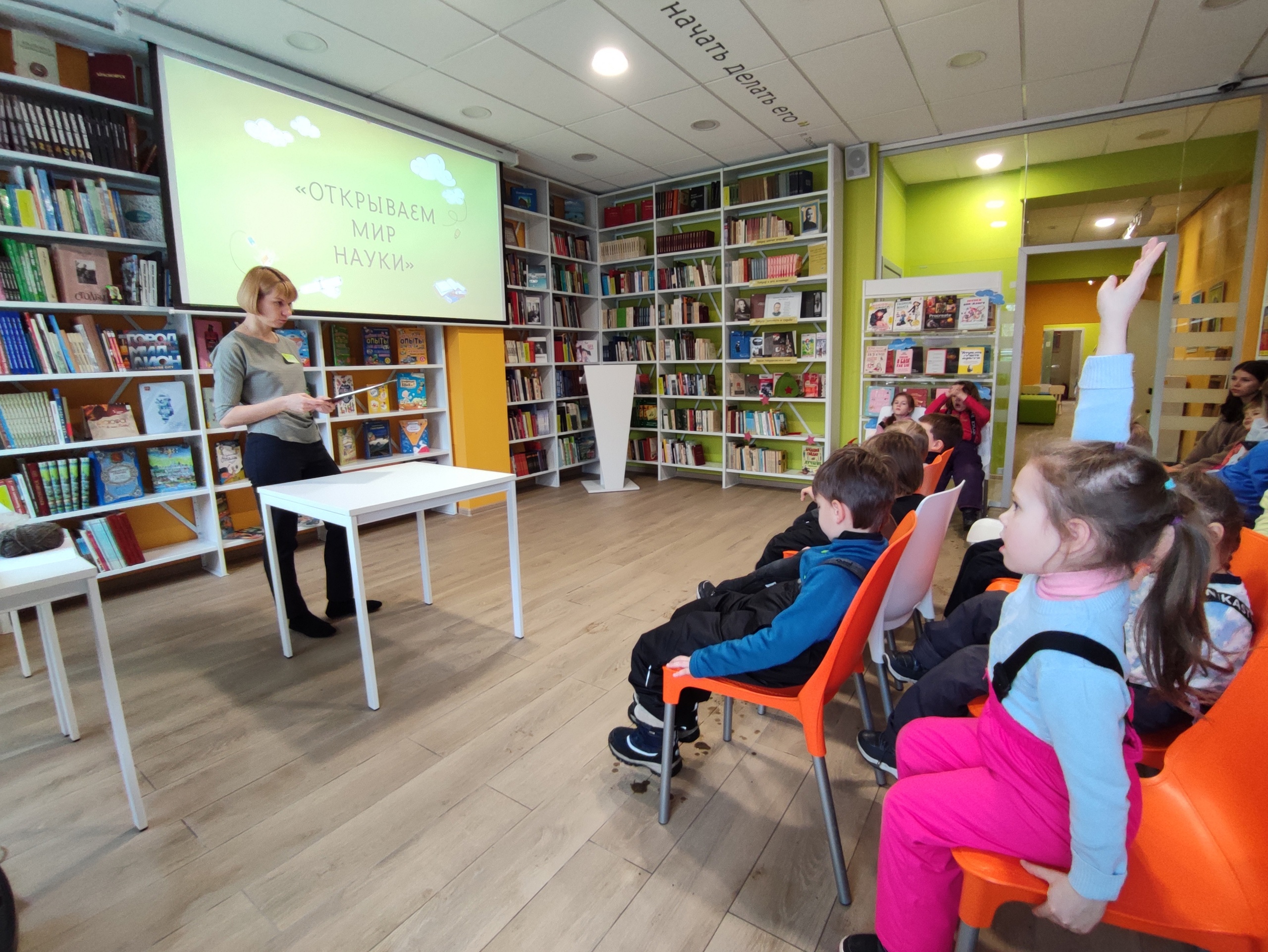 День науки ежегодно отмечают в Российской Федерации 8 февраля. А, как известно, наука - двигатель прогресса. Благодаря ее развитию в мире существует множество высоких технологий, медицинских открытий, бытовых и промышленных приборов, облегчающих и улучшающих жизнь человека.Наука для дошкольников - это интересные факты о растениях, о технике, о человеке, о Земле, физических и химических явлениях. Поэтому в рамках Всероссийской недели науки и техники, в период с 6 по 9 февраля, в нашей библиотеке для дошкольников проводится познавательный час "Открываем мир науки".Сегодня первыми участниками научных открытий стали ребята из МБДОУ №1 группы "Светлячки" и "Пчелки".