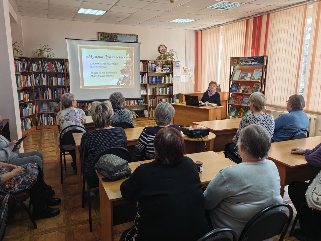 В читальном зале центральной районной библиотеки для слушателей народного университета «Активное долголетие» состоялась лекция «Музыка Дунаевских», приуроченная к 125-летию со дня рождения И. Дунаевского и 80-летию М. Дунаевского.