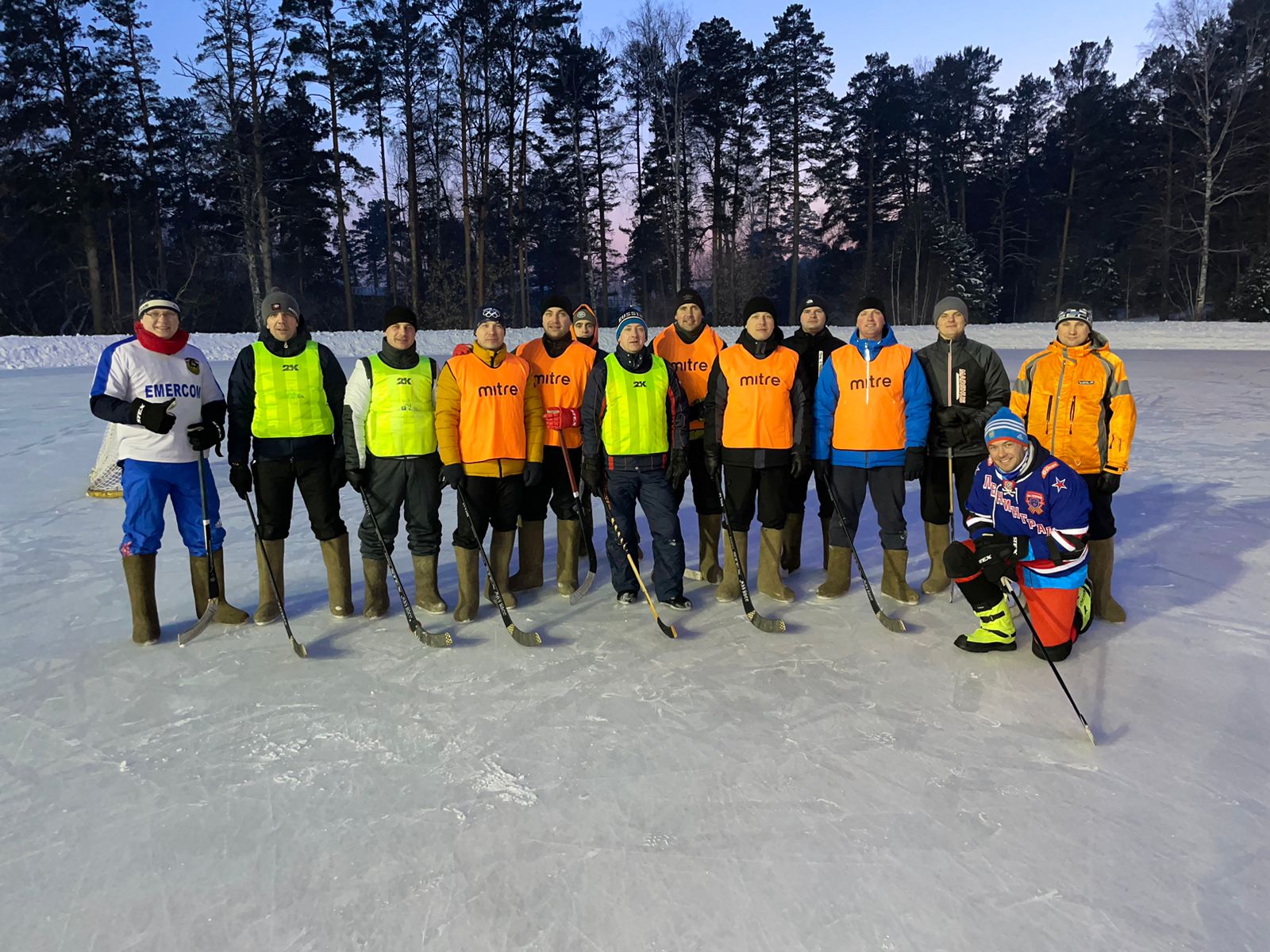 Скрестили клюшки в товарищеской игре по хоккею в валенках