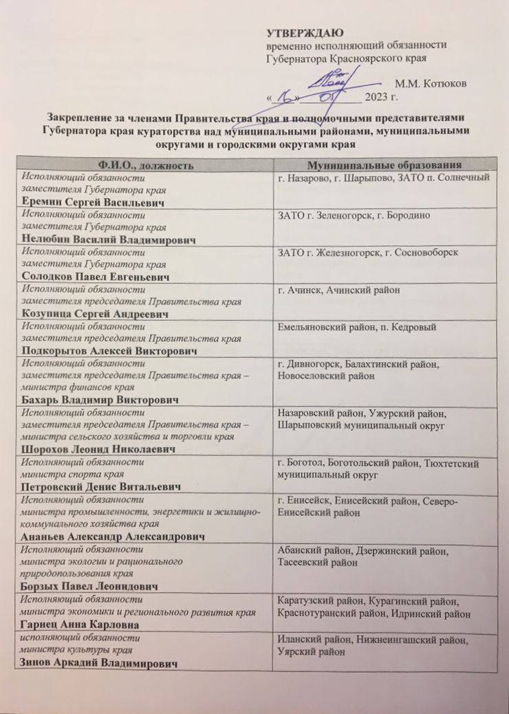 В ходе рабочей поездки по районам врио губернатора Михаил Котюков принял решение закрепить за каждой территорией ответственного члена правительства края.