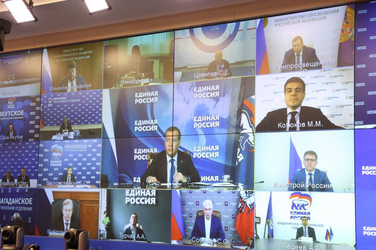 Лидер «Единой России» обсудил с руководителями территорий реализацию Народной программы партии и партийных проектов в социальной сфере, экономике, образовании, культуре и здравоохранении.