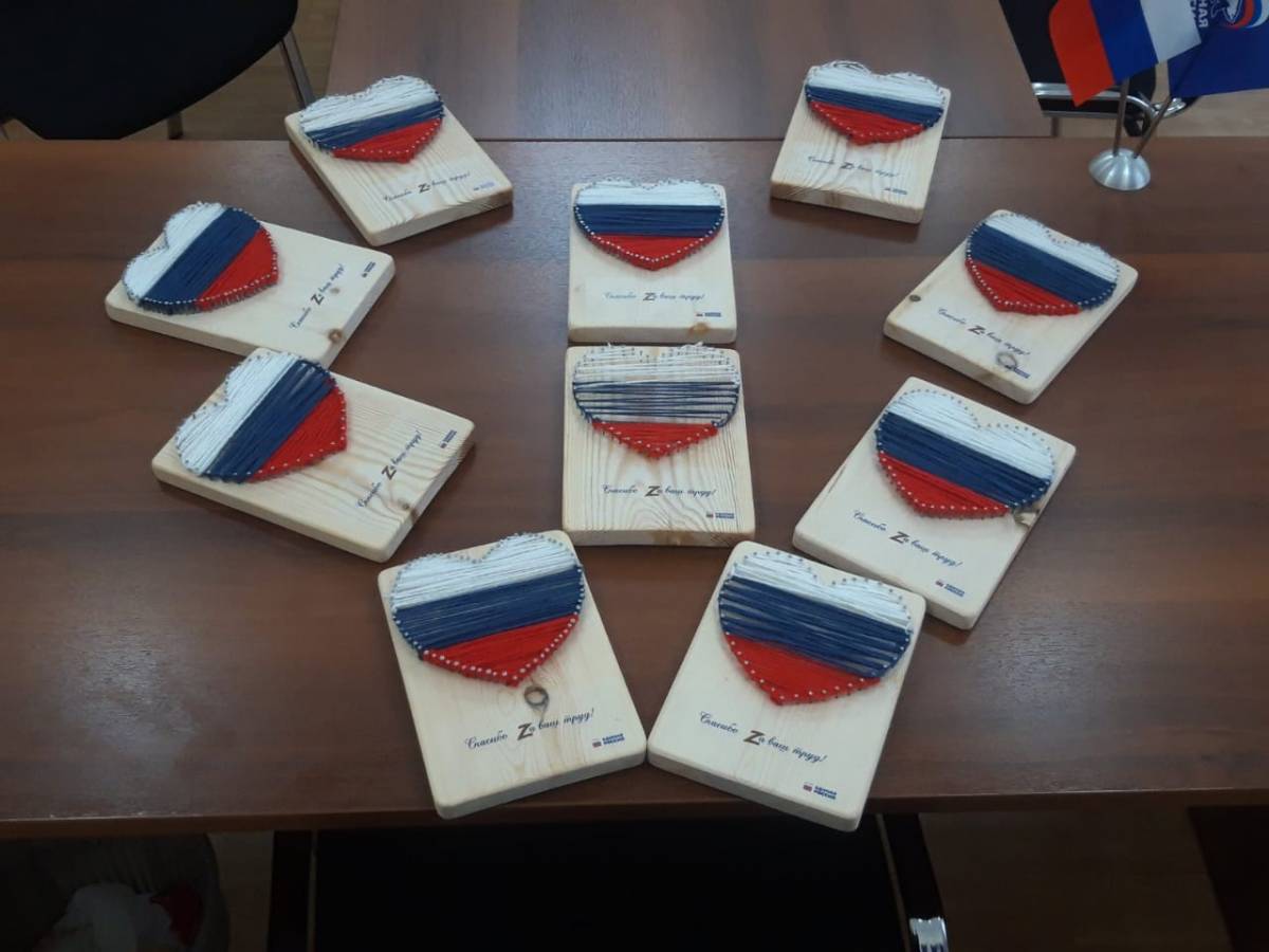 Сотрудники общественной приемной и активисты местных отделений «Единой России» в Красноярске сделали подарки – ниточные картины для женщин-волонтеров.