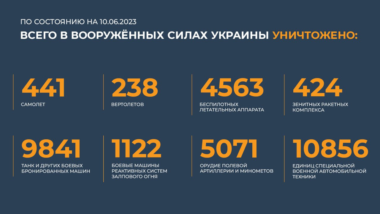 Сводка Минобороны РФ о ходе специальной военной операции на 10 июня 2023 года