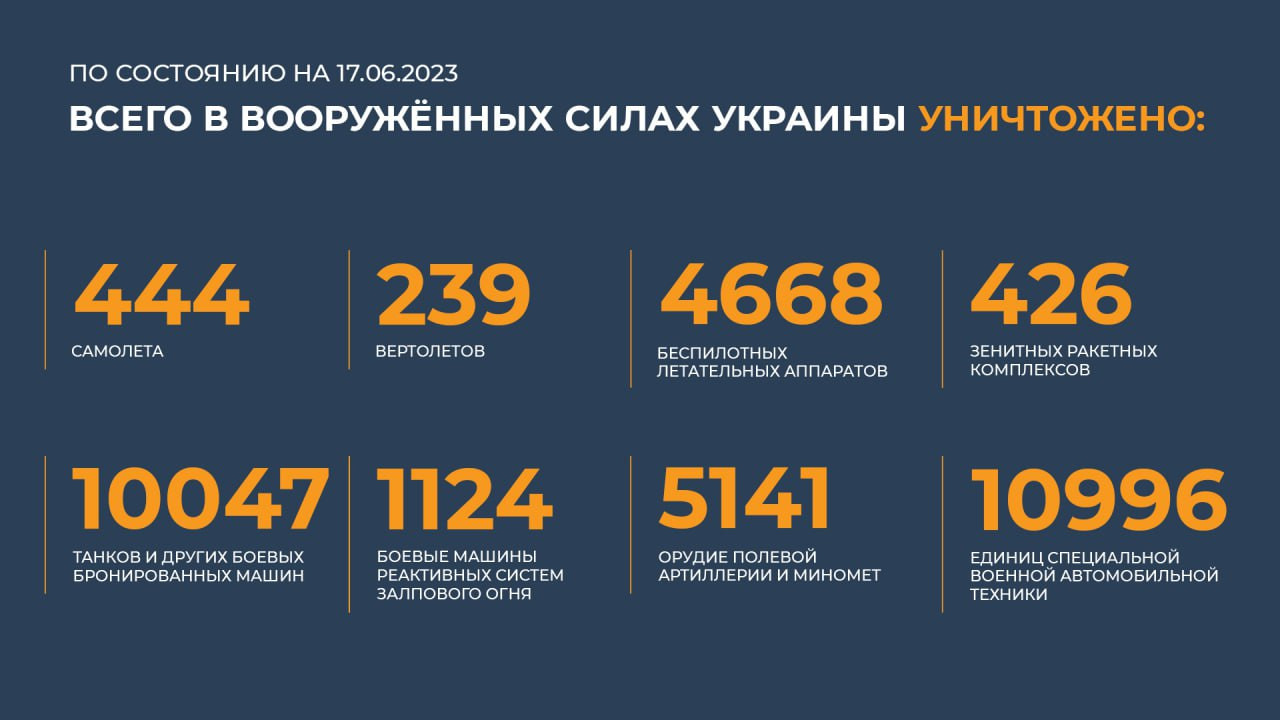 Сводка Минобороны РФ о ходе специальной военной операции на 17 июня 2023 год