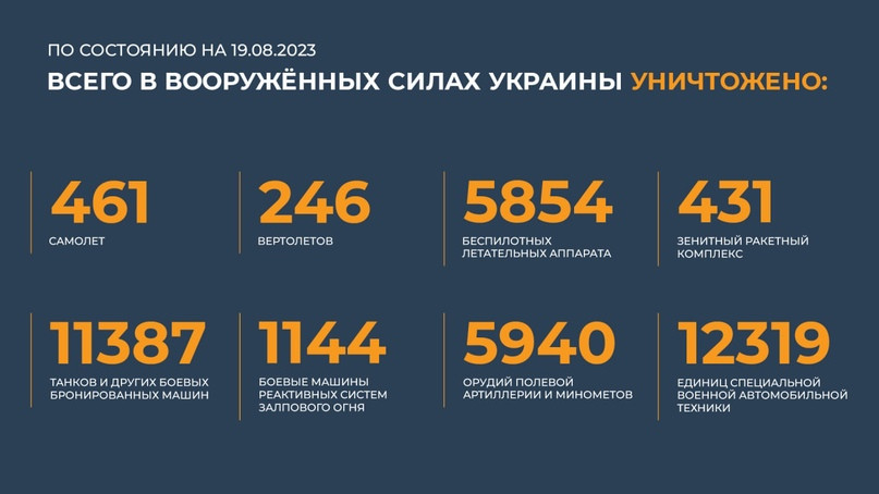Сводка Минобороны РФ о ходе специальной военной операции на 19 августа 2023 года