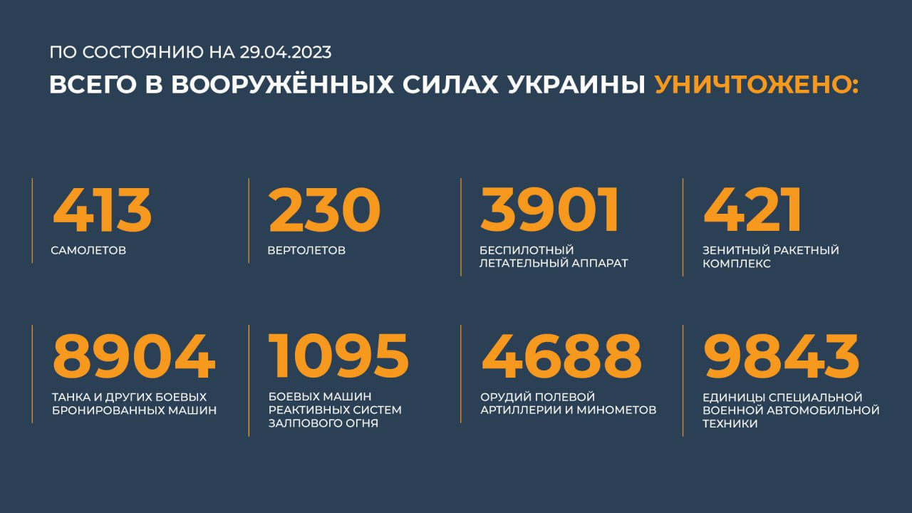 Сводка Минобороны РФ о ходе специальной военной операции на 29 апреля 2023 года