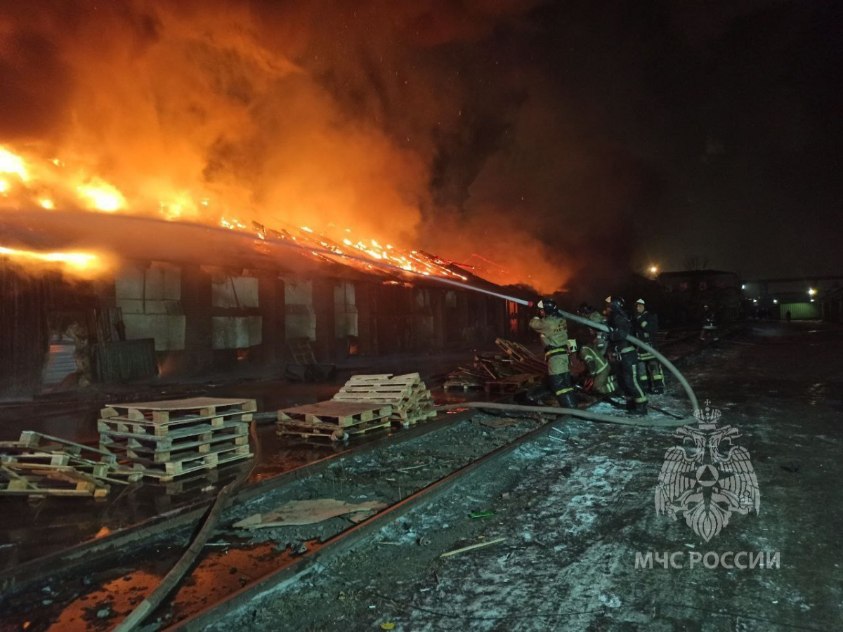 Пожарные потушили пожар на улице Ломоносова в Красноярске. Там сегодня горел склад.