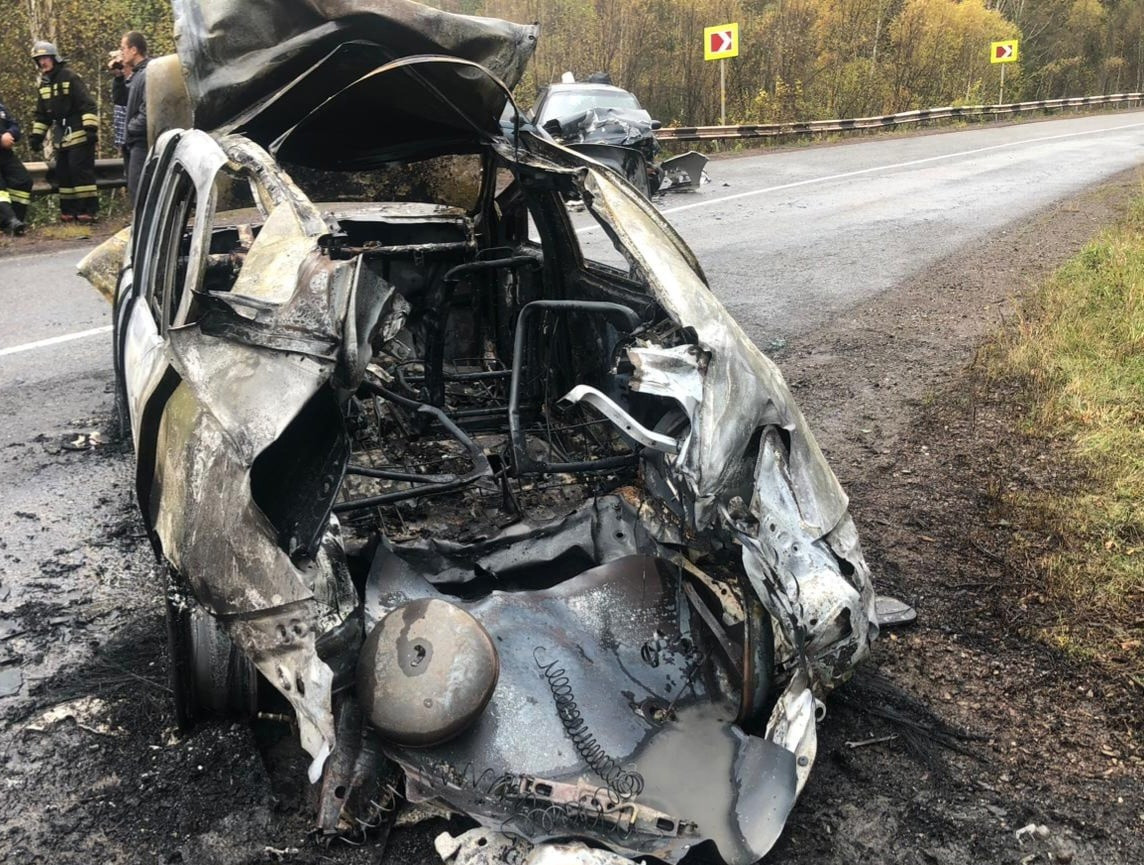 В Красноярском крае на трассе машина Renault врезалась в Toyota и загорелась, 1 человек погиб