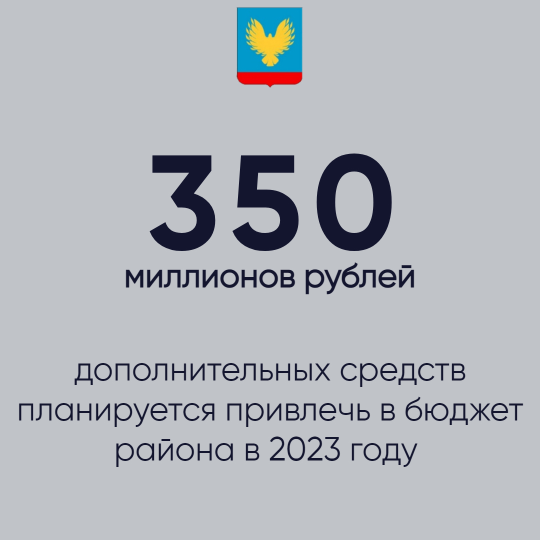 Более 350 миллионов рублей дополнительных средств планируется привлечь в бюджет района в 2023 году