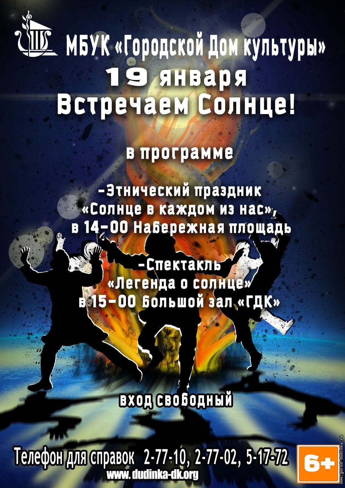 Городской Дом культуры приглашает жителей и гостей Дудинки на праздник встречи солнца «Хэйро», который состоится 19 января в 14:00 на Набережной площади.
