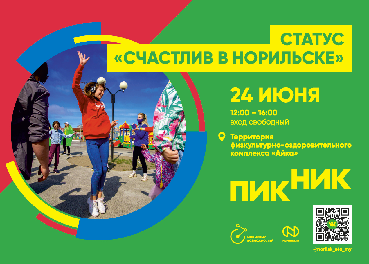 Ежегодный уличный фестиваль «Пикник «Город — это мы!» состоится 24 июня в Норильске около спортхолла «Айка». Основная тема фестиваля в 2023 году — счастье города, практики благополучия и обретение гармонии во всех сферах жизни. Организаторами мероприятия выступают активные горожане, участники благотворительной программы «Мир новых возможностей», программы корпоративного волонтёрства «Комбинат добра» и проекта «В хорошей компании» при поддержке компании «Норникель».