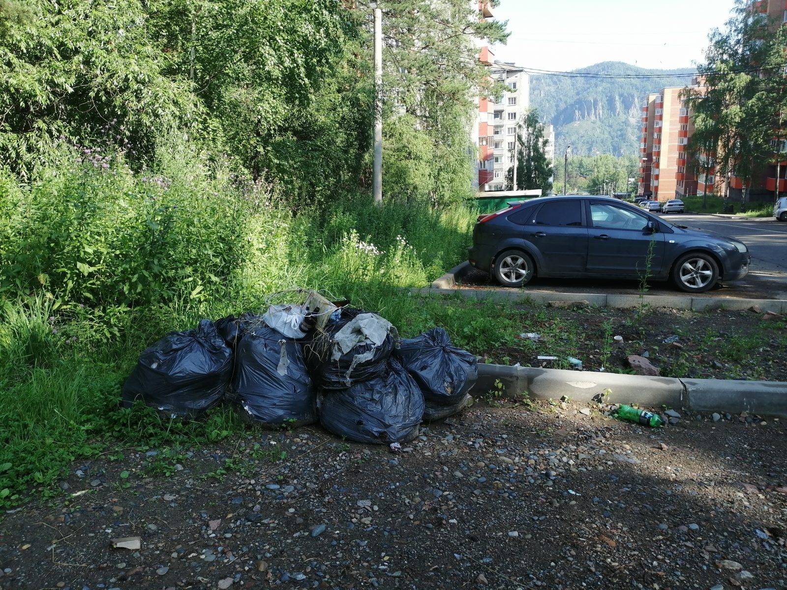 Весенние субботники прошли уж как два месяца назад. В районе улицы Саянской кто-то тоже наводил порядок и поставил мешки напротив входа в школу № 2. Удивительно, что забирать их никто не торопится.