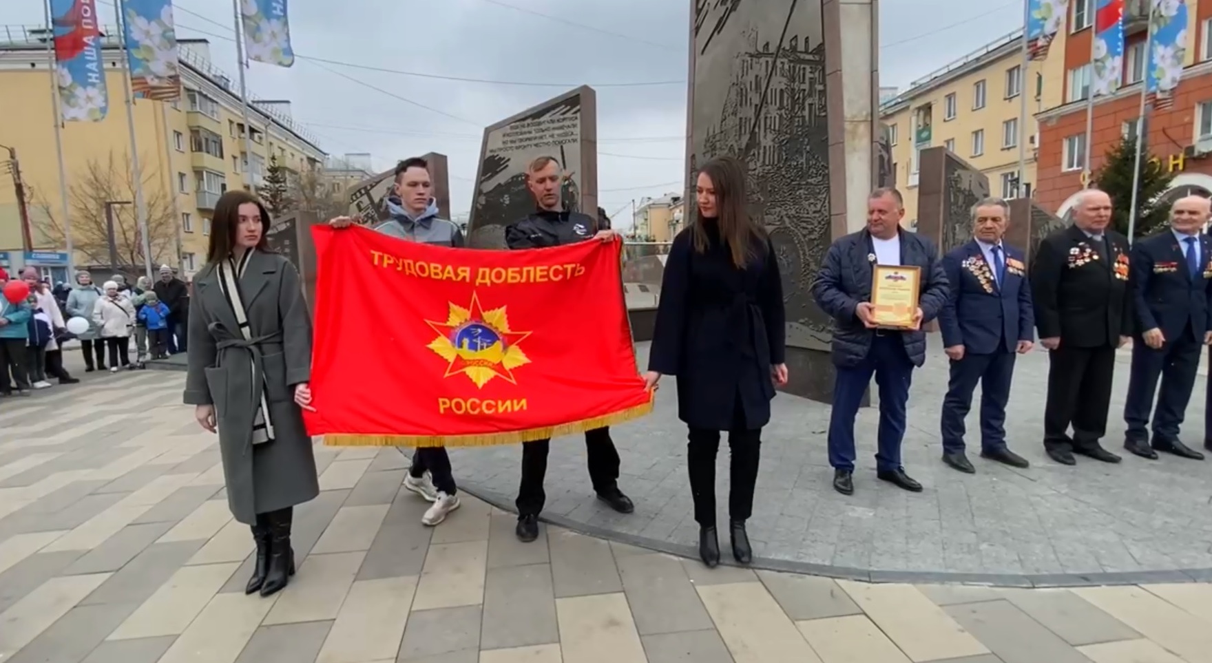 Сегодня в Красноярске на площади перед ДК им. 1 Мая прошло торжественное мероприятие, приуроченное ко Дню Весны и Труда. У стелы «Красноярск – город Трудовой доблести» мэр города Владислав Логинов обратился к горожанам, поздравил их с праздником и вручил переходящее Знамя «Трудовая доблесть России» муниципальному дорожному ремонтно-строительному предприятию «Левобережное» — «за высокие показатели в общественной и производственной деятельности».