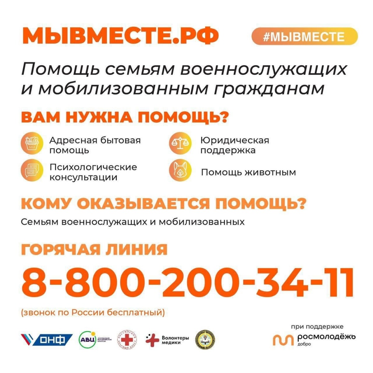 В круглосуточном режиме можно обратиться за бытовой, психологической, гуманитарной и юридической поддержкой на горячую линию по телефону 8-800-200-3411, открывшуюся при поддержке Народного Фронта. Запросы о получении помощи можно отправить на обновленную платформу мывместе.рф .