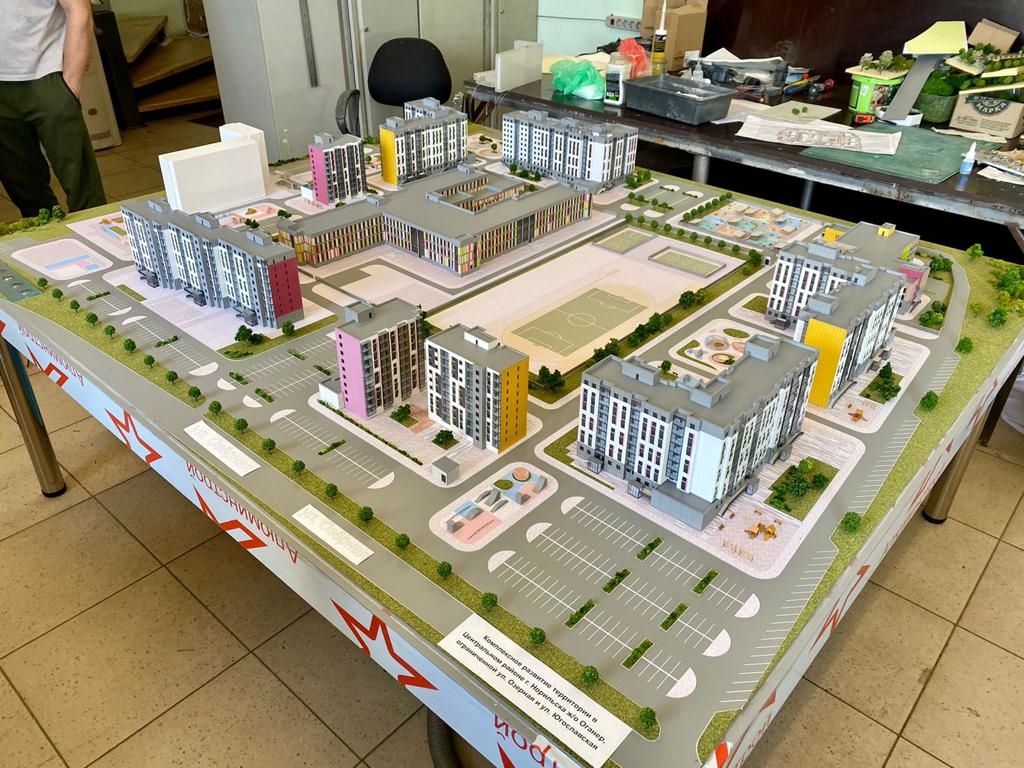 Макет, изготовленный по инициативе проектного офиса ЗФ «Норникеля», отобразил планы по возведению ряда жилых и социальных зданий микрорайона.
