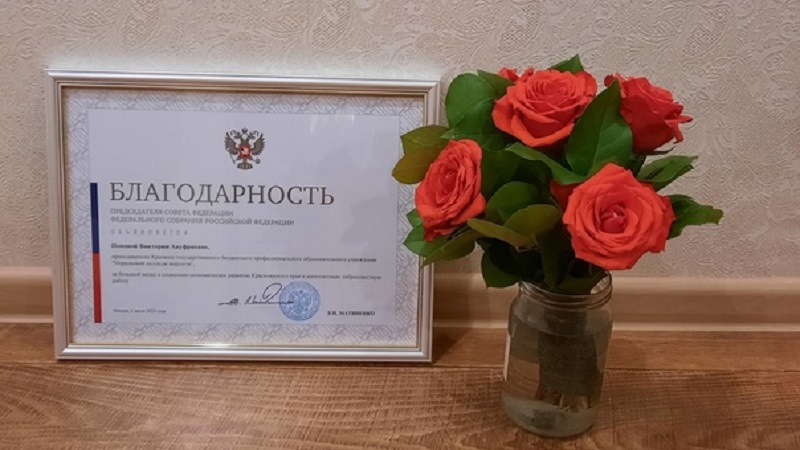Преподавателю НКИ Виктории Поповой вручили благодарность Совета Федерации