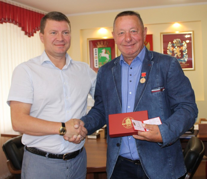 И.о. заместителя губернатора Красноярского края Сергей Ерёмин вручил сегодня медаль «200 лет Енисейской губернии» Юрию Саулову, директору Шарыповского филиала АО «Балахтинское ДРСУ».