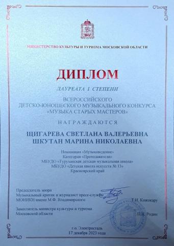 Светлана Валерьевна и Марина Николаевна награждены дипломом лауреата I степени в номинации «Музыковедение». Свою работу преподаватели посвятили творчеству выдающегося композитора Иоганна Себастьяна Баха.