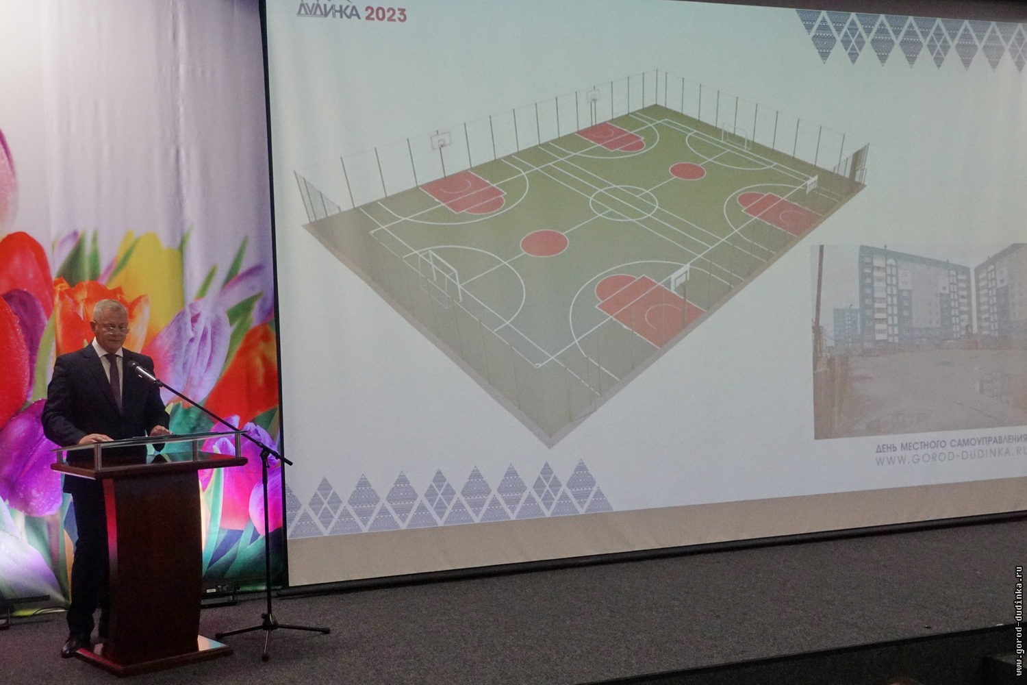 21 апреля в малом зале кинодосугового центра «Арктика» состоялось торжественное собрание, приуроченное ко Дню местного самоуправления. Ежегодно в рамках данного мероприятия глава города Дудинки Юрий Гурин озвучивает планы администрации муниципального образования «город Дудинка» на текущий год, оглашает итоги конкурса на лучшую организацию деятельности территориального общественного самоуправления в 2022 году, отмечает наградами муниципальных служащих и представителей общественности, внесших свой вклад в развитие местного самоуправления Дудинки. Участие в мероприятии приняли сотрудники администрации города и подведомственных учреждений, депутаты городского Совета, почетные граждане и представители общественности.