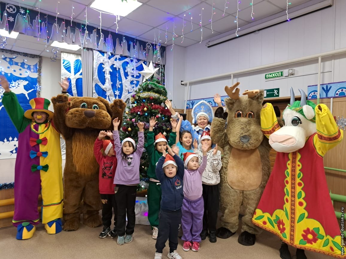 По окончанию игровой программы гости мероприятия — собачка Гав, Коза-дереза, Олень и Снегурочка — преподнесли ребятам сюрприз в виде танцевального флешмоба, в котором ребята повторяли за героями зажигательные движения под новогоднюю музыку.