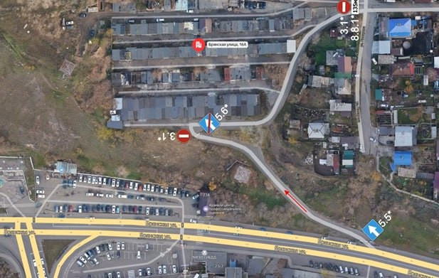 В связи с этим рабочая группа решила поменять схему. Двигаться можно будет только в одну сторону - с улицы Брянской к гаражам. В обратном направлении придётся использовать проезд через улицы микрорайона Покровка.