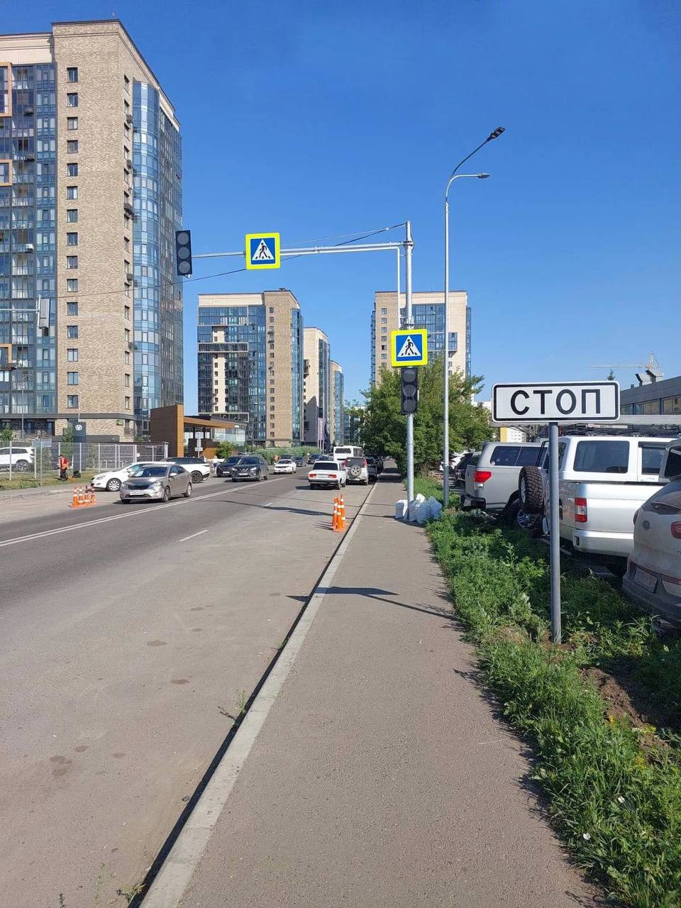 В Красноярске скоро откроют регулируемый пешеходный переход рядом с ЖК "Скандис".