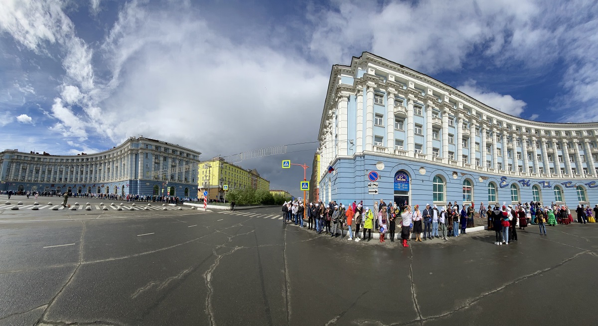 Непрерывная замкнутая цепочка протяженностью 3800 метров выстроилась на обеих сторонах главного проспекта заполярного города от площади Гвардейской до улицы Орджоникидзе.