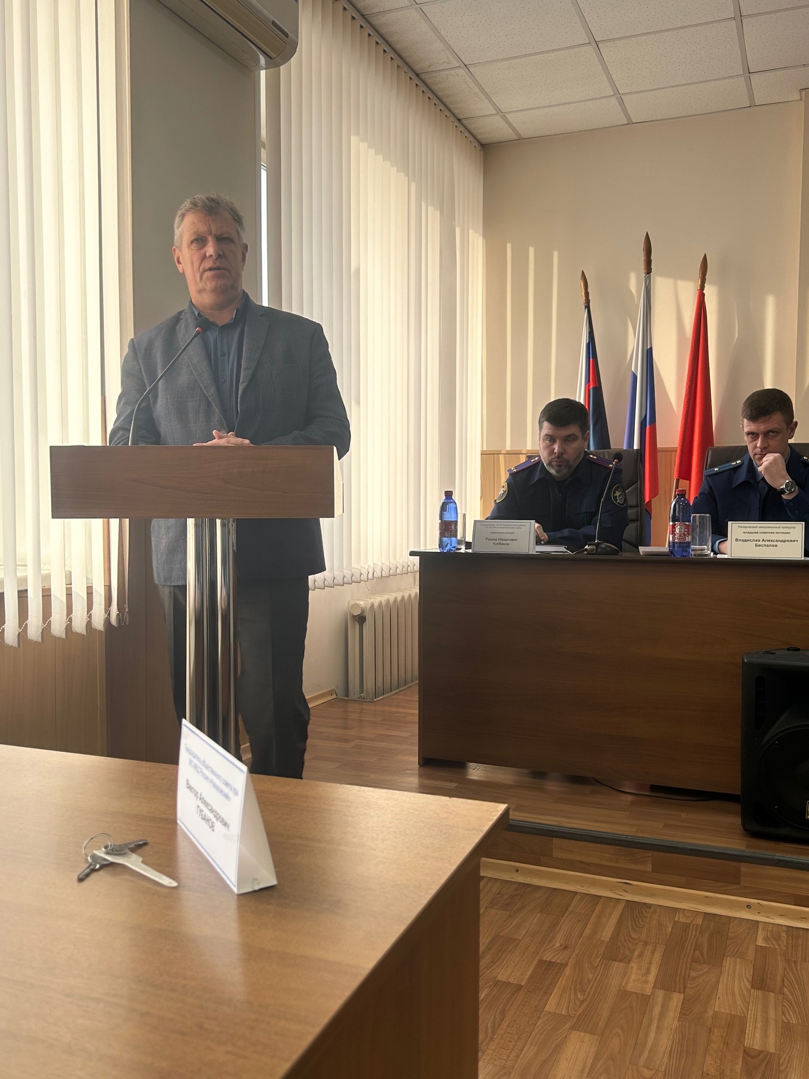 На отчётном мероприятии присутствовали 1 заместитель главы г. Назарово Александр Гейнрих, заместитель главы Назаровского района Максим Куликов, межрайонный прокурор Вячеслав Беспалов, руководитель Следственного отдела СК по г. Назарово и Назаровскому району, подполковник юстиции Рашид Курбанов, Председатель Общественного Совета Виктор Губанов, ветераны межмуниципального отдела полиции, представители СМИ.