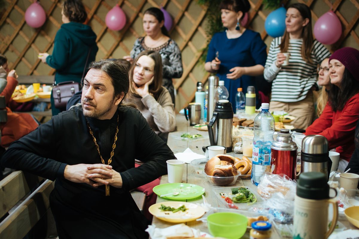 Знакомство с клубом для нашей семьи началось как раз с празднования восьмой годовщины. Нас пригласили, мы тогда еще почти никого не знали. Настолько была дружественная и теплая атмосфера, что это было не заметно…. А сейчас Клуб для меня – это одна большая, дружная семья! Любое мероприятие – это как встреча с близкими родственниками! Все, как родные, готовы при необходимости прийти друг другу на помощь И конечно же, наши добровольцы вносят огромный вклад в общее дело! Маргарита Бойкова, участник православного клуба "Встреча" Поздравить участников клуба с десятилетием пришли настоятель Введенского храма Сосновоборска иерей Николай Чихичин, благочинный Березовского района, настоятель Введенского храма Березовки иерей Вячеслав Комаров, штатный священник Покровского собора Красноярска иерей Олег Иванов с матушками и детьми.