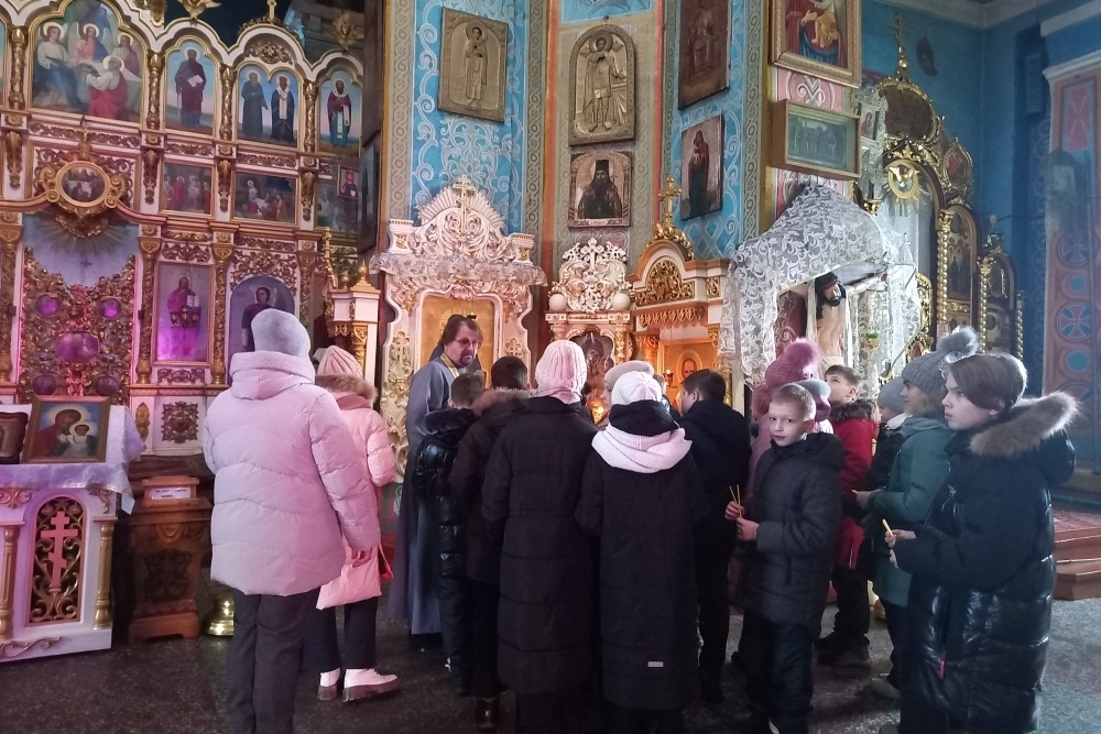 21 февраля экскурсию по Казанскому собору для учащихся городской средней общеобразовательной школы № 15 города Ачинска провёл штатный священник собора протоиерей Александр Осипов.