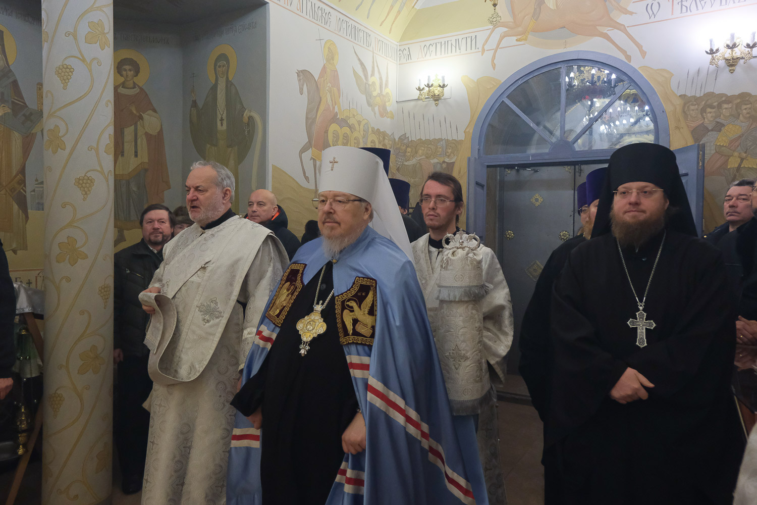 Его Высокопреосвященству сослужили: руководитель Административного секретариата Красноярской епархии, настоятель Покровского кафедрального собора города Красноярска митрофорный протоиерей Владимир Дорош; секретарь Красноярской епархии, благочинный церквей Левобережного городского округа Красноярска, наместник красноярского Успенского мужского монастыря игумен Иннокентий (Нилов); заведующий канцелярией Красноярской епархии, настоятель храма святого Иоанна Предтечи протоиерей Николай Ши-кэ-мин; благочинный больничных церквей города Красноярска, настоятель красноярских храмов апостола Андрея Первозванного и великомученика Димитрия Солунского иерей Виталий Вальтер; настоятель Илиинского храма и Красноярского Никольского кладбищенского храма иерей Александр Колпаков; штатные священнослужители Покровского кафедрального собора и храма Николая Чудотворца.