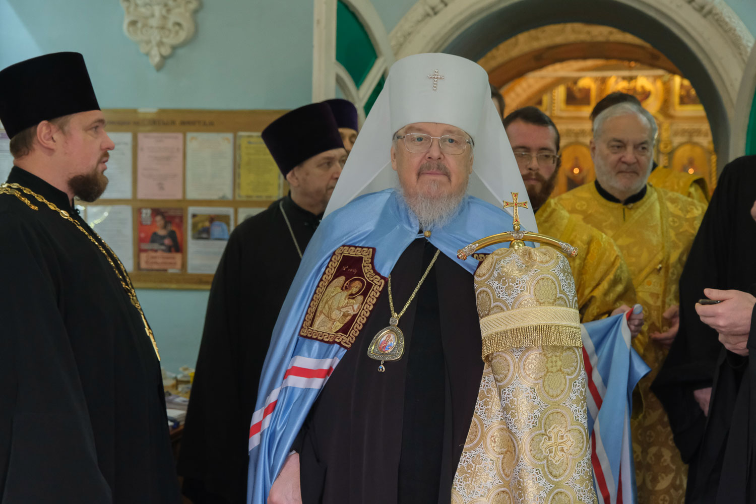Его Высокопреосвященству сослужили: секретарь Красноярской епархии, благочинный церквей Левобережного городского округа Красноярска, наместник красноярского Успенского мужского монастыря игумен Иннокентий (Нилов); благочинный больничных храмов города Красноярска, настоятель красноярских храмов апостола Андрея Первозванного и великомученика Димитрия Солунского иерей Виталий Вальтер; председатель Отдела здорового образа жизни и спорта Красноярской епархии, штатный священник красноярского Покровского кафедрального собора иерей Димитрий Любочко; ключарь Покровского кафедрального собора города Красноярска иерей Игорь Лыткин.