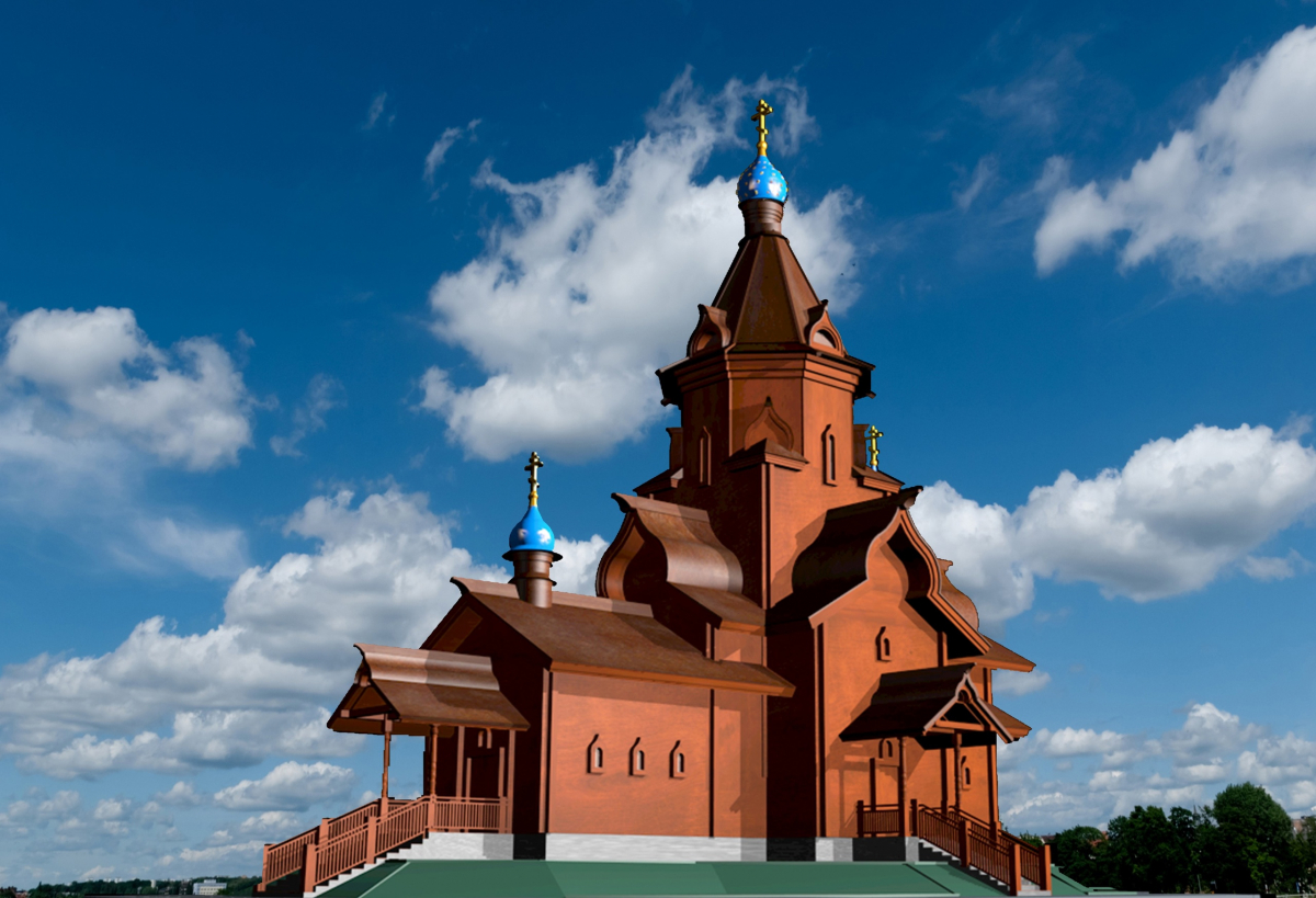 Сообщается, что храм будет небольшим. Его сделают из бруса. Высота от земли до кончика креста составит 27 метров. Вокруг храма будет живая изгородь, лавочки и детская площадка.
