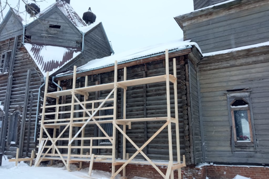 В Красноярском крае устанавливают строительные леса для реставрации Барабановской церкви