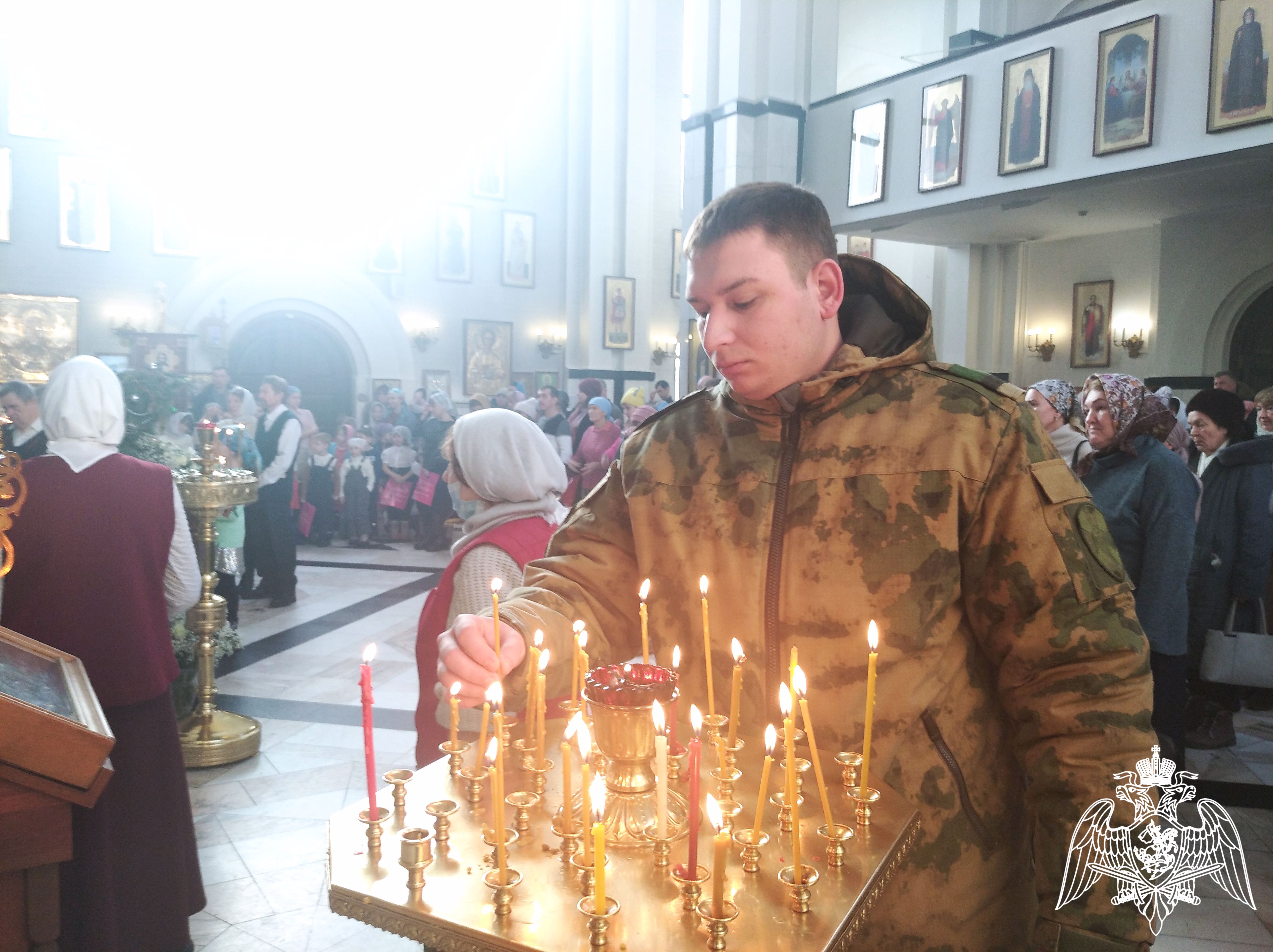 Военнослужащие Росгвардии посетили Божественную литургию в день Рождества Христова в Зеленогорске