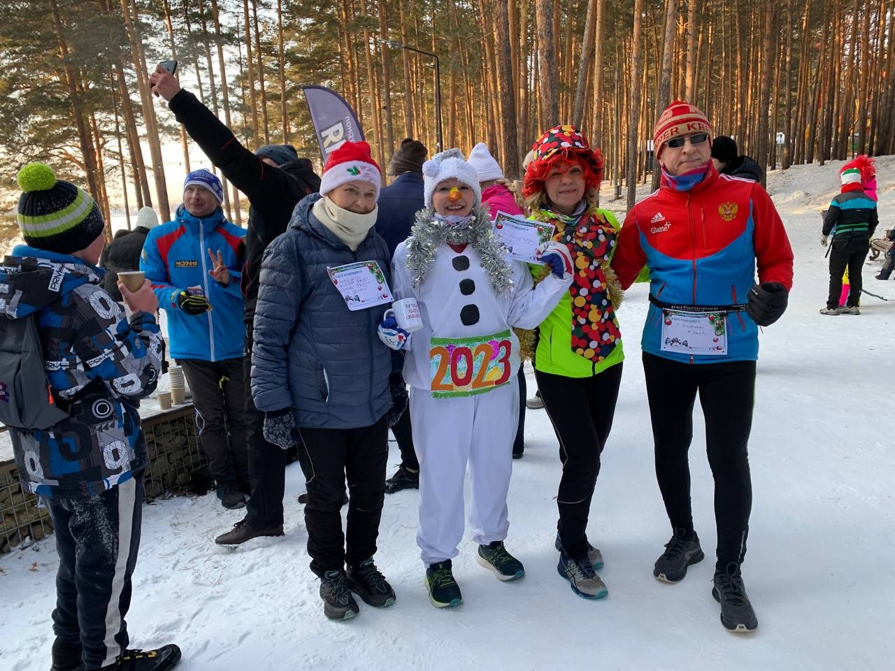 Участники писали обещания, разминались, тянули канат и, конечно, бежали 2023 метра. Бодро, красиво, весело.