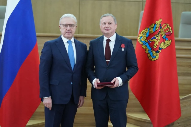 Губернатор Красноярского края Александр Усс вручил директору Территориального фонда обязательного медицинского страхования Красноярского края Сергею Козаченко государственную награду Российской Федерации – Медаль ордена
