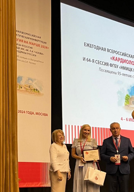В рамках Медико-социального проекта «Вместе за здоровые сердца», инициированного ФГБУ "НМИЦК им. ак. Е.И. Чазова" Минздрава России и Национальным медицинским обществом профилактической кардиологии ежегодно проходят несколько конкурсов. В конкурсе "Лучшие клинические практики в кардиологии" победила наш врач-кардиолог Нина Михайловна Крючкова. Ее работа «Система управления рисками у пациентов с сердечно-сосудистыми заболеваниями в многопрофильном стационаре» признана лучшей.