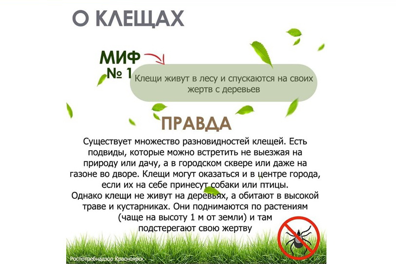 Также Роспотребнадзор разобрал в своём Telegram-канале ряд популярных мифов о клещах и дал полезные советы.