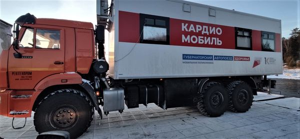 Мобильная поликлиника Красноярской краевой клинической больницы работает в составе автопоезда "Здоровье". Проект инициирован губернатором края и входит в приоритетный национальный проект «Здравоохранение» в рамках региональной программы «Развитие первичной медико-санитарной помощи в отдалённых районах края».
