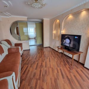 Квартира в самом центре города , в кирпичном девятиэтажном доме. Окна и лоджия выходят на центральную улицу. Автобусные и трамвайные остановки все под окнами. Магазины аптеки в доме. Так же рядом Олимп , рекорд, звездный. Мфц , налоговая, администрация , банки , кафе.