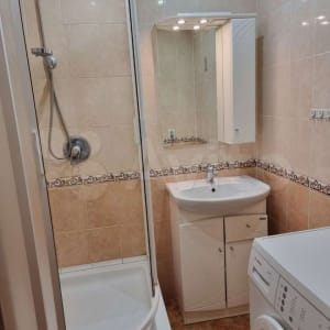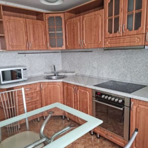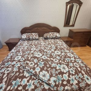 В квартире двуспальная кровать и диван в зале. Вся бытовая техника , стиральная машинка автомат, плита , утюг микроволновая печь, чайник.