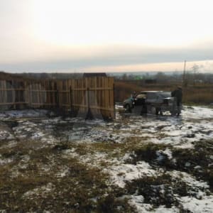 Хорошее место, с видом на город, часть забора, машина песка и щебня. документы свет вода готовы.